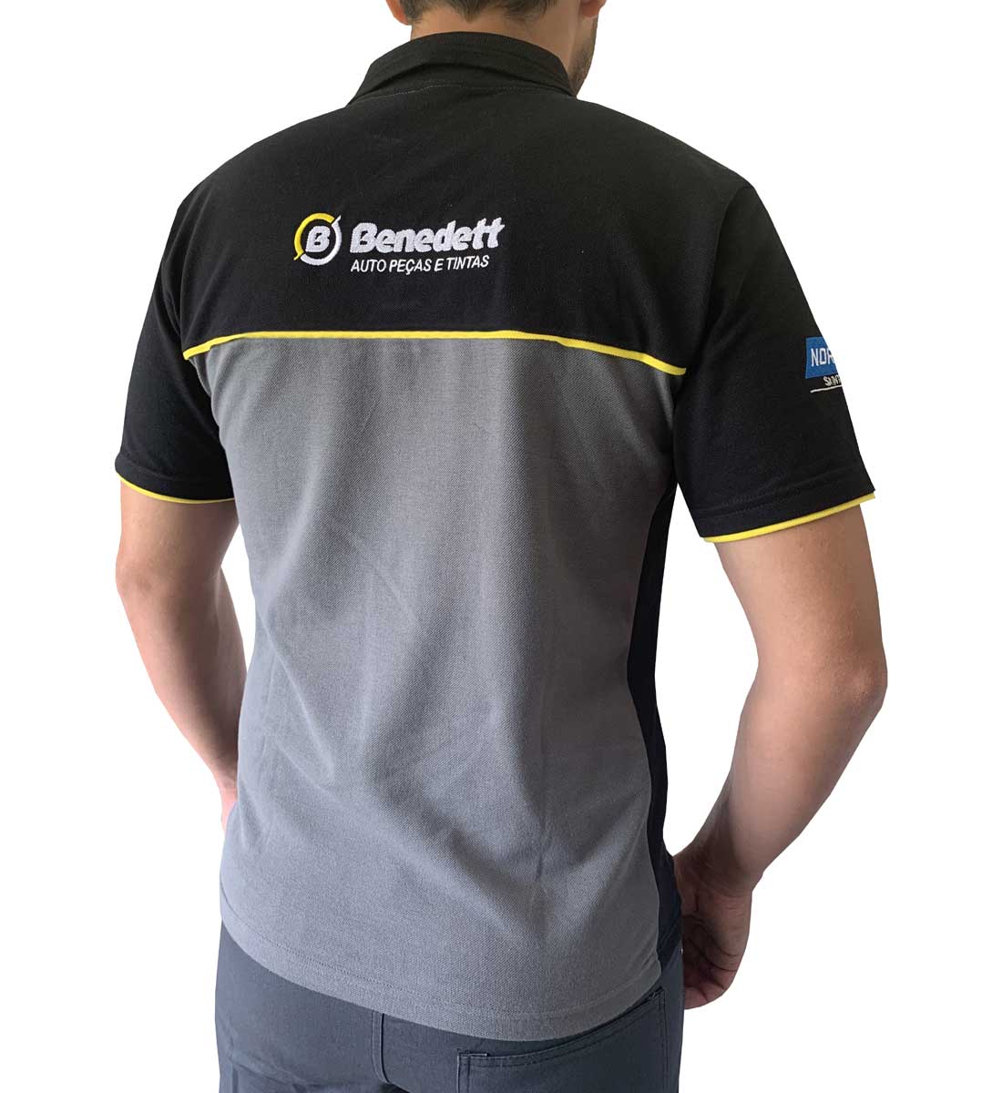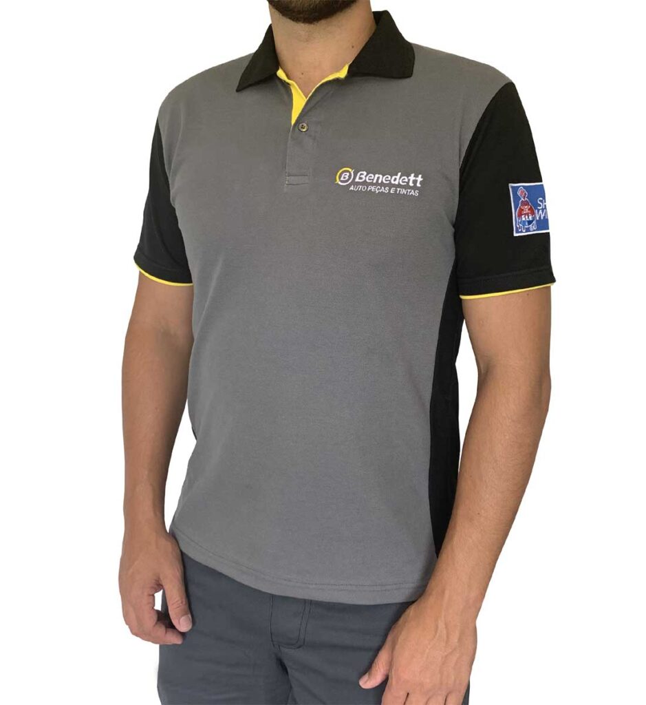 Camisetas polo podem ser feitas de Piquet misto ou de meia malha 100% algodão . Podem ter pé de gola, punho de retilínea. Masculina e feminina.